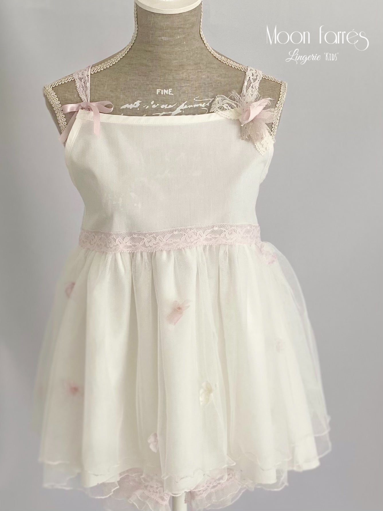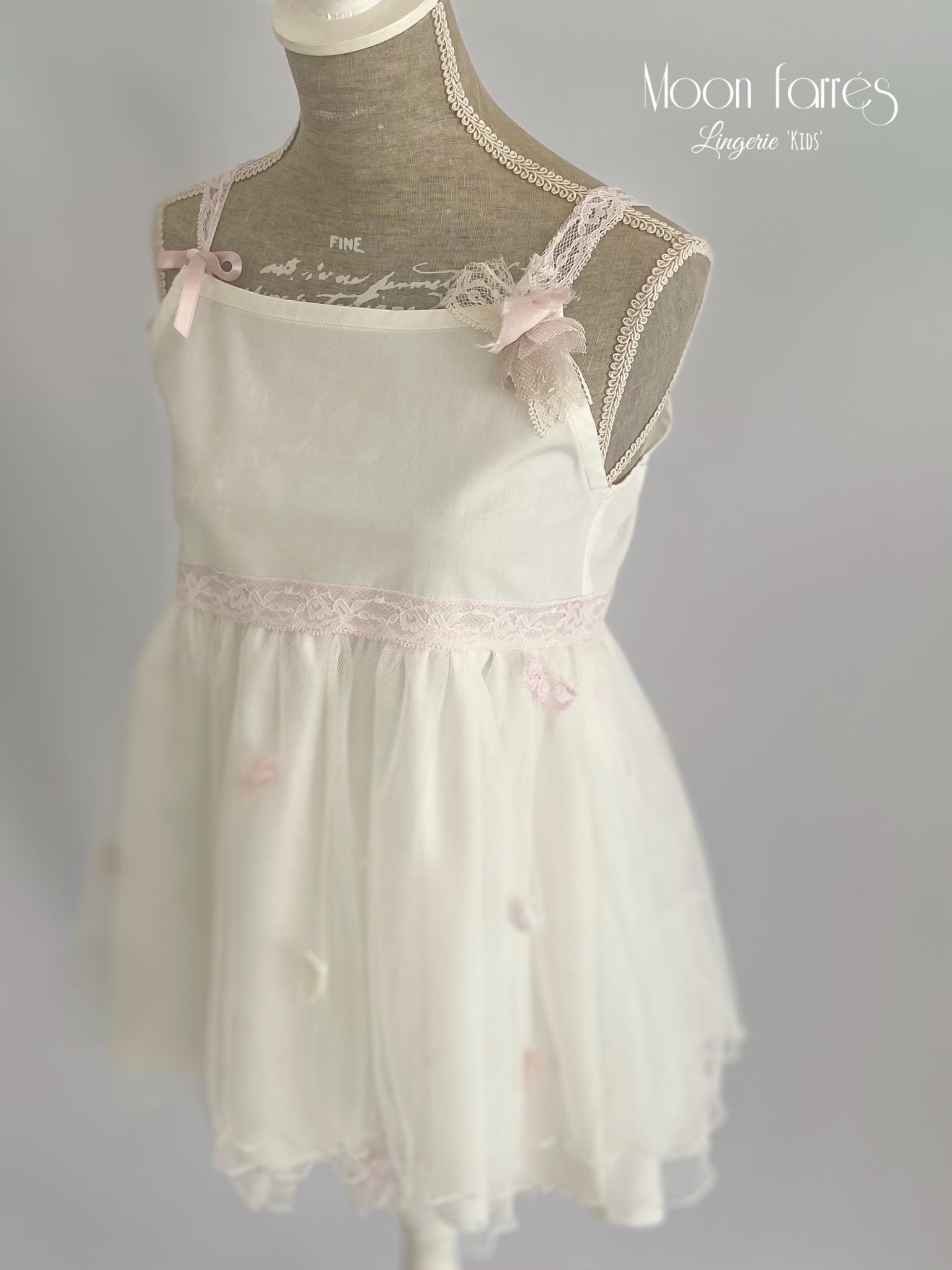 - Cuerpo con doble capa de una preciosa tela de muselina blanca de algodón 100% natural.