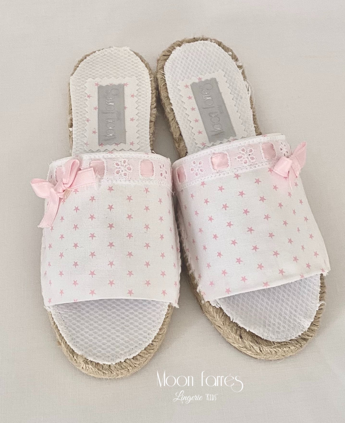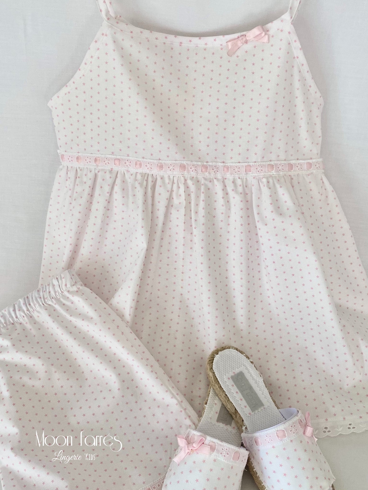 Reinventando uno de nuestros clásicos, la Alpargata!. Hace 20 años empezamos con ellas y nos resistimos a dejarlas. En esta ocasión las adaptamos a nuestros conjuntos de Lenceria para Niñas. Ropita de Dormir para auténticas Hadas.
