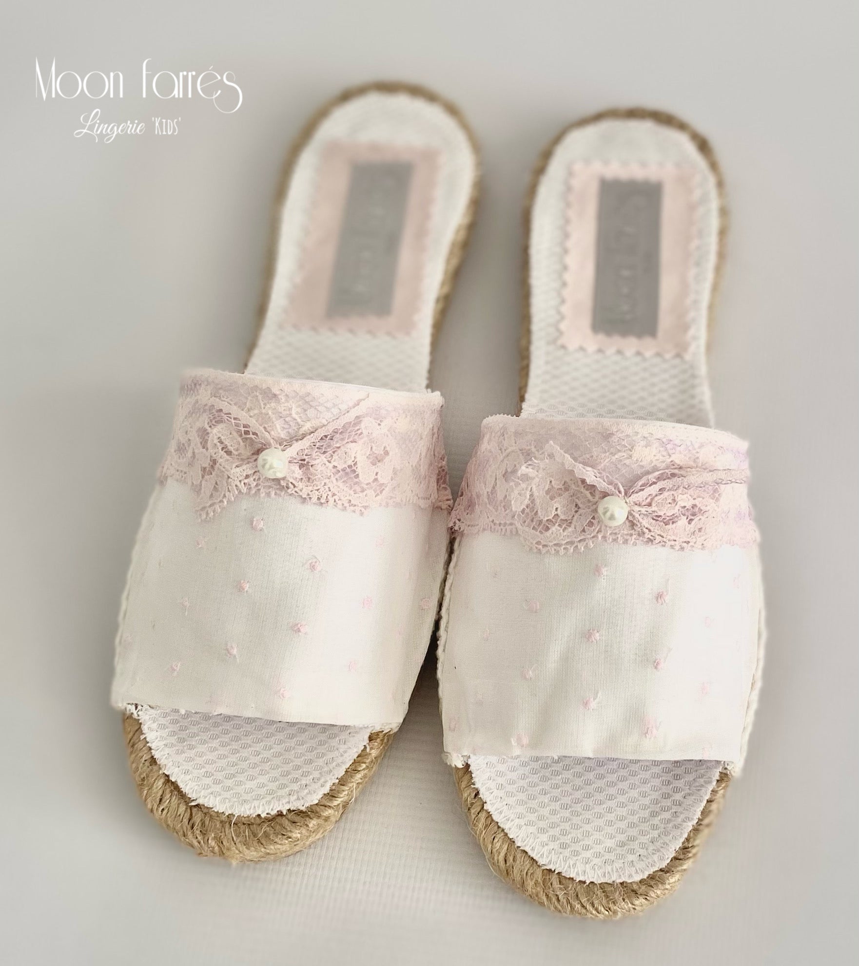 Preciosas Zapatillas - Alpargatas de Lenceria para niñas. Complemento de la colección GRETHEL. (Pijama, bata, neceser...)