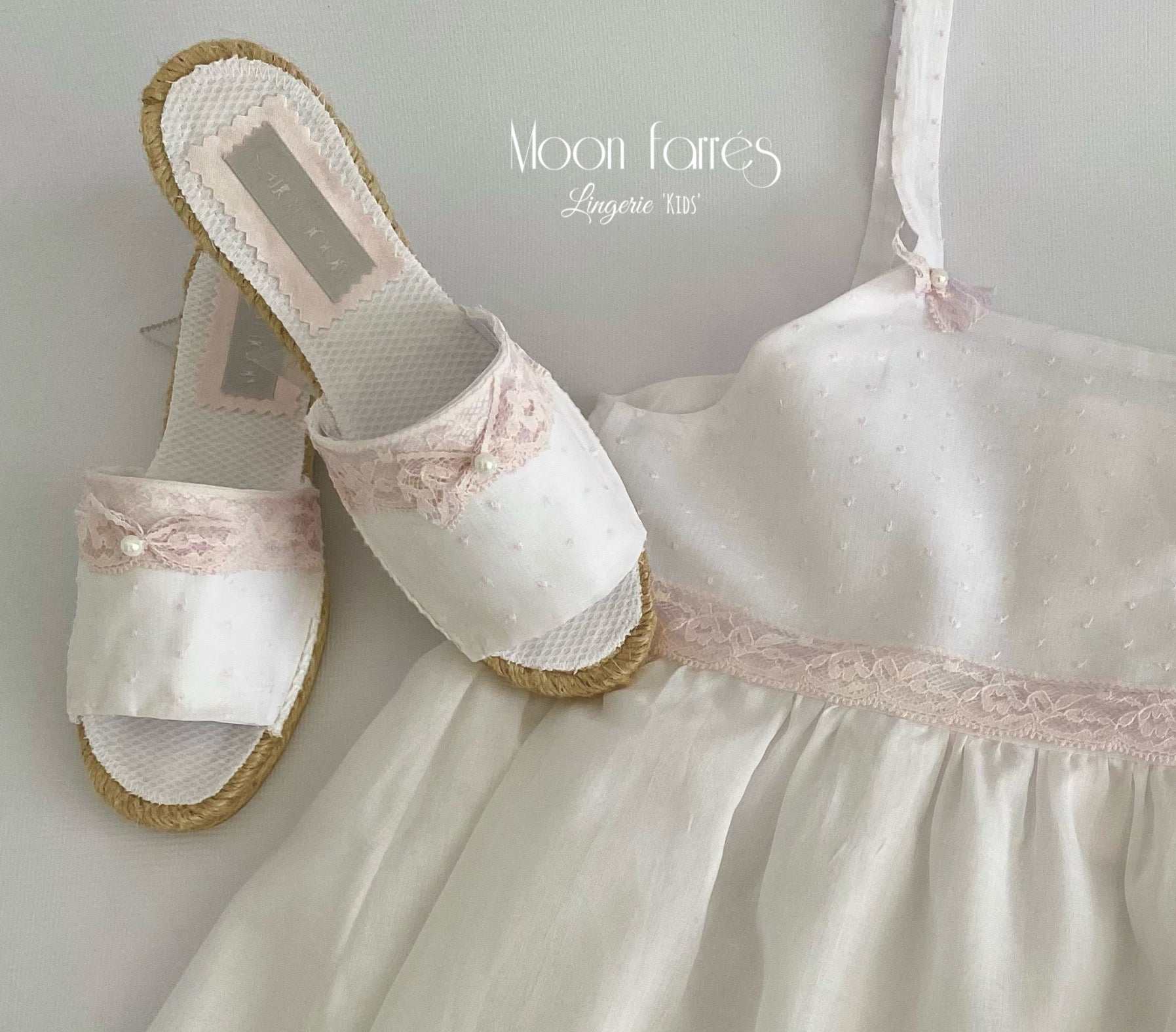 Reinventando uno de nuestros clásicos, la Alpargata!. Hace 20 años empezamos con ellas y nos resistimos a dejarlas. En esta ocasión las adaptamos a nuestros conjuntos de Lenceria para Niñas. Ropita de Dormir para auténticas Hadas.