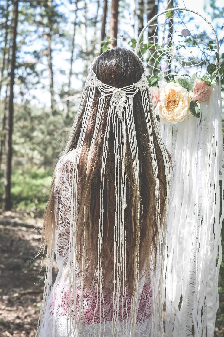 Tocado/velo de novia Boho Chic con macramé. Para novias bohemias, salvejes, atrevidas y auténticamente únicas.