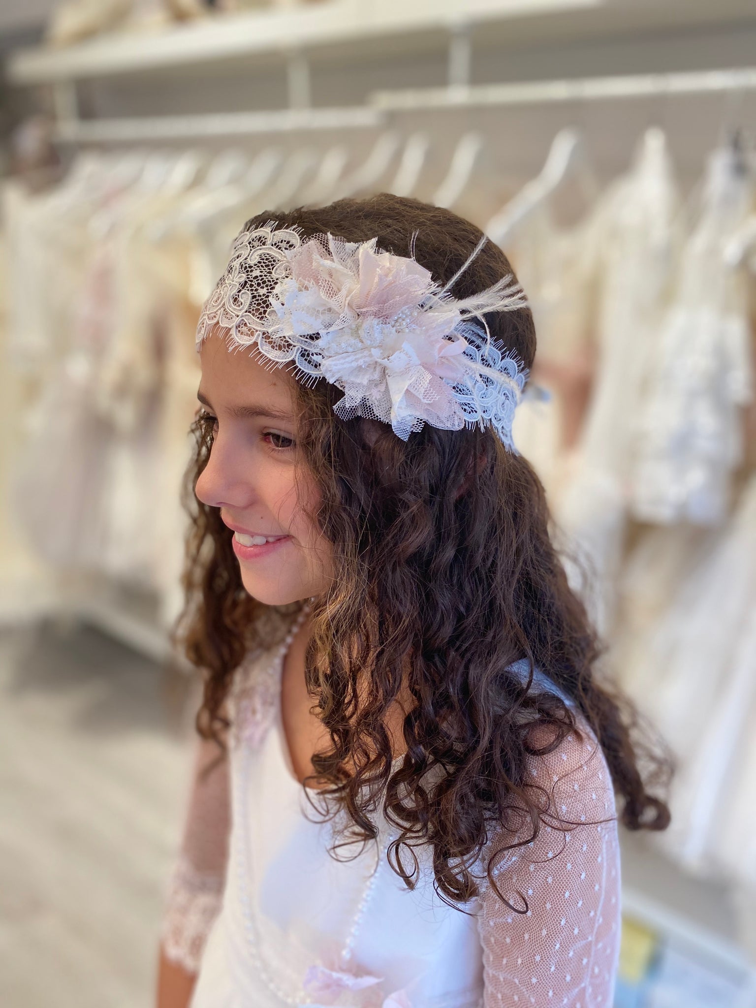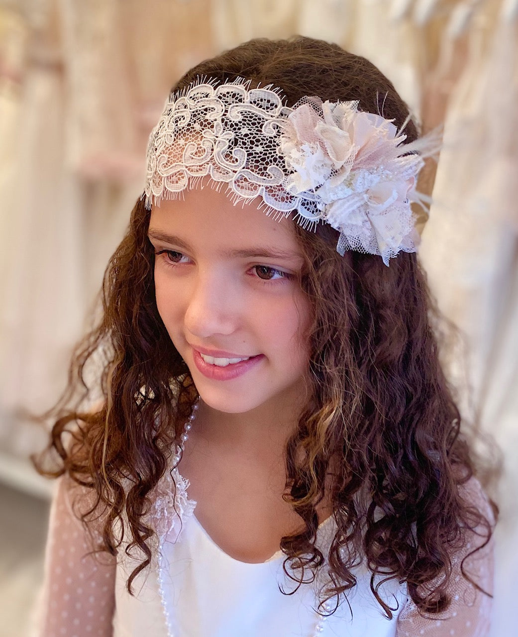 Turbante Tocado de niña para Comunión, Arras o Ceremonia. Modelo BRUMA