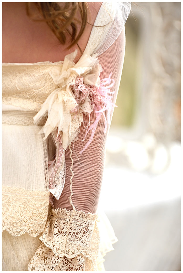 Utilizamos materiales y telas de primera calidad; sedas, organzas, tules, chantilly, bordados... Teñimos de manera artesana consiguiendo tonalidades únicas y las trabajamos con todo mimo cuidando hasta el último detalle.