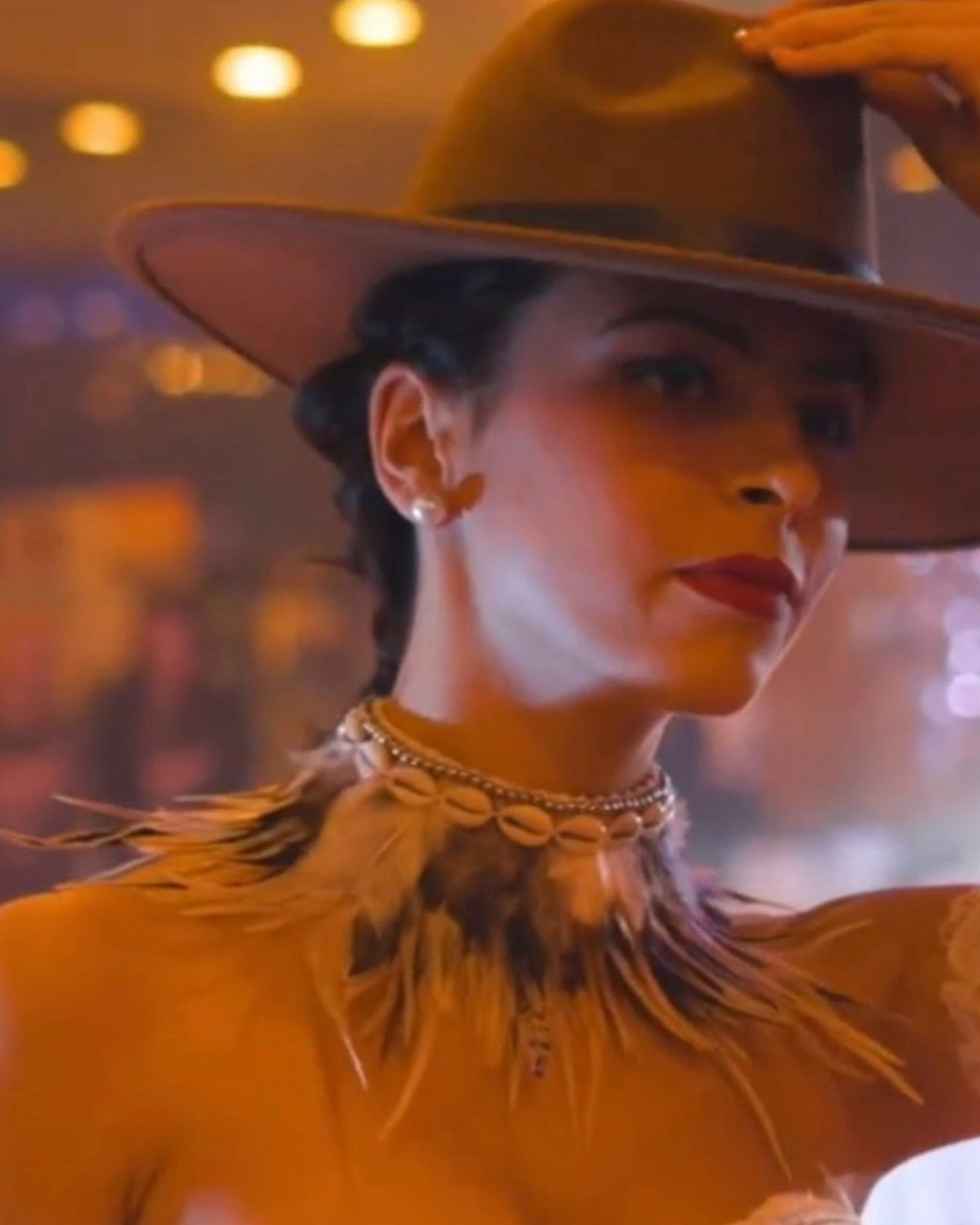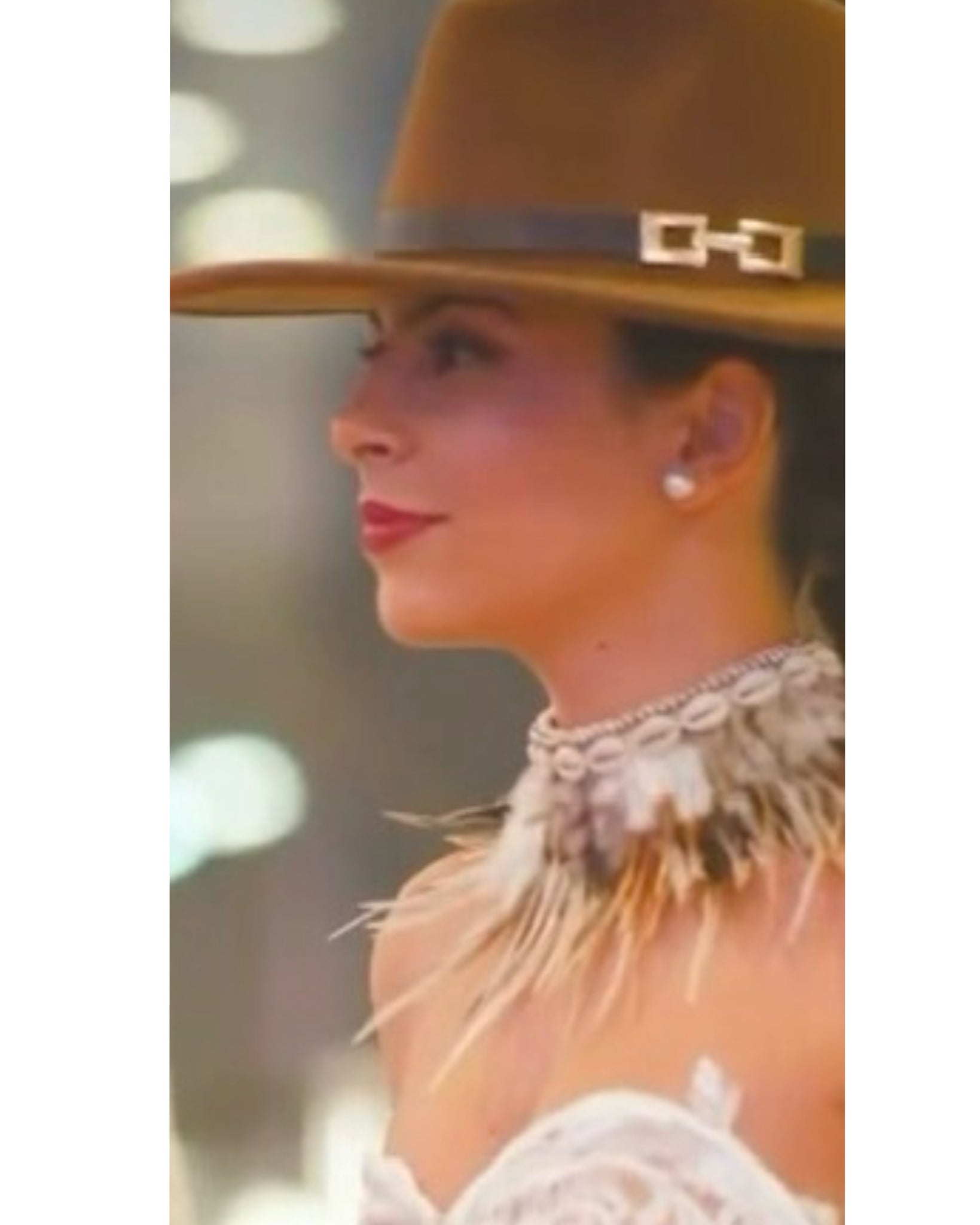 Cuello de plumas naturales en forma de collar-gargantilla en tonos ocre, marrón y marfil. Montado en la parte interior con un tejido suave para que no roce tu piel. Decorado con tiras de conchas de mar naturales dándole un aire Boho- Chic y bohemio.